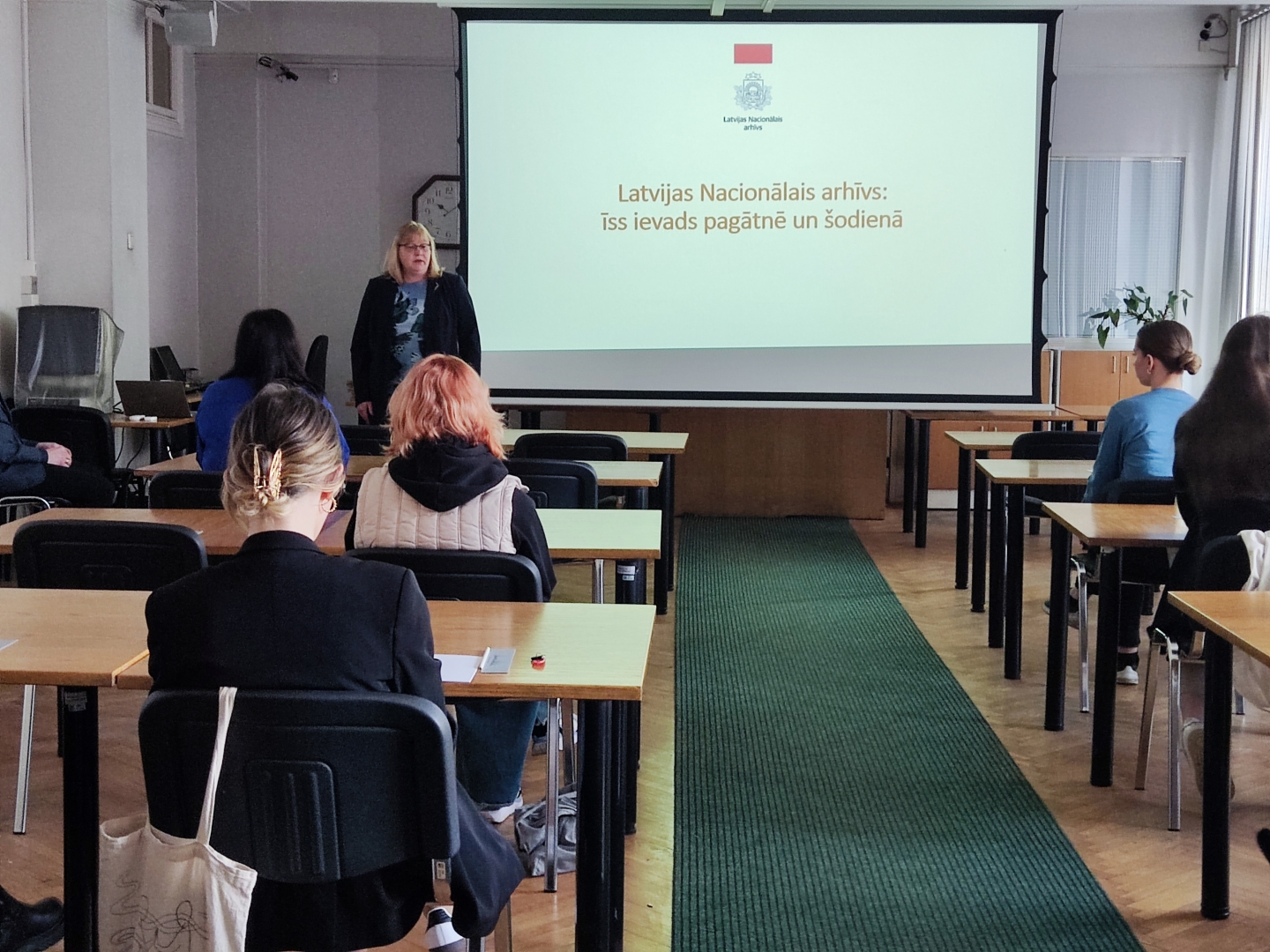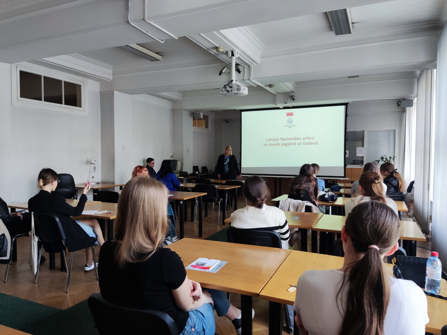 Klātienē organizētajā atvērto durvju dienā 10. aprīlī studentiem bija iespēja tikties ar LNA Latvijas Valsts vēstures arhīva dokumentu preventīvās saglabāšanas speciālistiem, uzzināt par viņu studiju laika sapņiem, darba pieredzi arhīvā un arhīva vairāk nekā 100 gadu ilgo vēsturi. Studenti apmeklēja LNA senāko struktūrvienību – Latvijas Valsts vēstures arhīvu, kurā glabājas vairāk nekā seši miljoni dokumentāro liecību par notikumiem Latvijas teritorijā laikposmā no 1220. līdz 1945. gadam, kā arī iepazina dokumentu restaurācijas un digitalizācijas procesus.