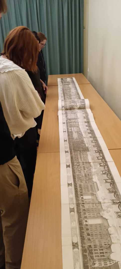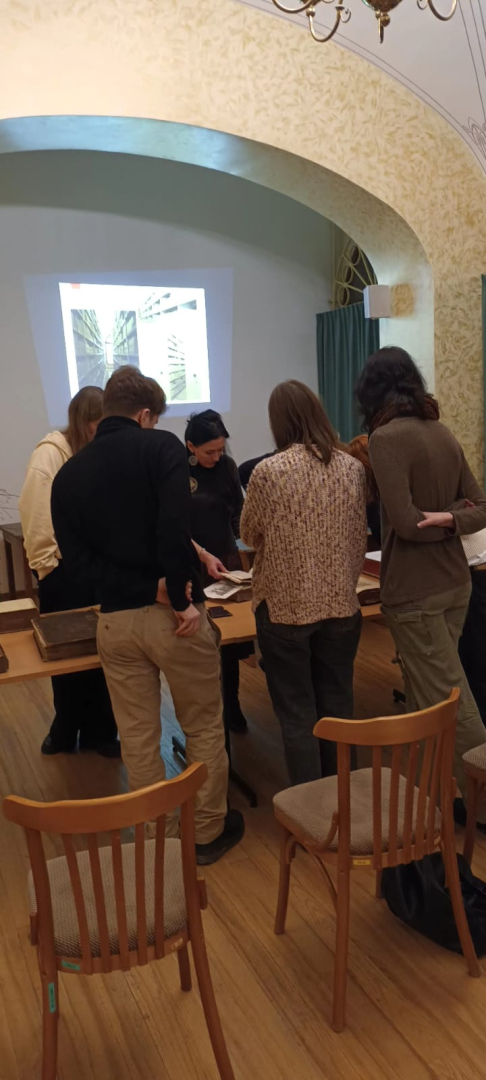 Arhīva eksperte Renāte Berga iepazīstināja ar LNA bibliotēkas krājumā glabātajiem Vidzemes bruņniecības seniespiedumiem, sniedzot studentiem arī praktisku informāciju par senajām grāmatām, kā arī atklājot, kā bibliotēkas krājums var būt noderīgs un izmantojams arī studiju procesā.