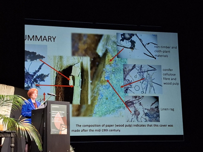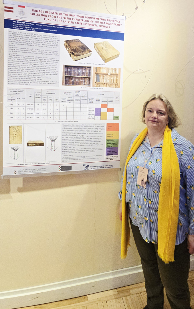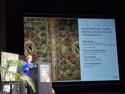 Dokumentu preventīvās saglabāšanas departamenta direktore Inga Šteingolde konferencē prezentēja sadarbībā ar Latvijas Nacionālā mākslas muzeja, Latvijas nacionālā vēstures muzeja, Latvijas Nacionālas bibliotēkas kolēģiem veidoto kopprojektu "Venēcijas t.s. kasešu tipa iesējuma izpēte un konservācija”. Projekta ietvaros Latvijas Nacionālā mākslas muzeja Venēcijas tipa iesējuma vākiem veikta datēšana – vēsturiskā analīze, atribūcija, polihromā krāsojuma un materiālu izpēte. Latvijas Nacionālajā arhīvā tika veikta papīra un ādas analīze, pārliecinoši iegūstot datus par iesējuma piederību 19.gadsimtam. Šādi starpdisciplināri projekti sniedz ievērojamu sadarbības un pieredzes apmaiņas pienesumu.