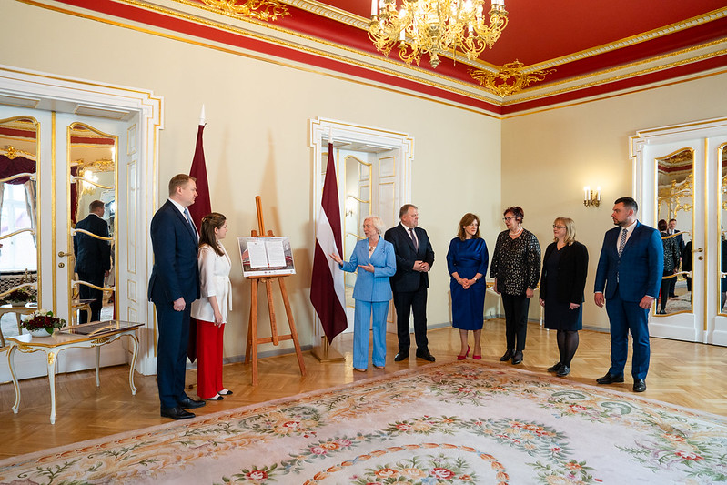 Latvijas Republikas Saeimas dāvinājuma pasniegšana Latvijas skolām Latvijas Republikas neatkarības atjaunošanas 35.gadadienā.