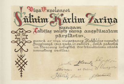 UNESCO programmas “Pasaules atmiņa” Latvijas nacionālajā reģistrā iekļauta Latvijas Nacionālā arhīva albumu kolekcija “Latviešu bēgļu dzīve nometnēs Vācijā (1945–1949). Dāvinājums Kārlim Zariņam, ārkārtējo pilnvaru nesējam, Latvijas sūtnim Lielbritānijā”.