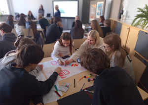Visā nodarbības laikā skolēni arīdzan veica “domu kartēšanu” – radošā veidā apkopoja atziņas par dzirdēto, redzēto un saprasto, par propagandas dažādām izpausmēm dotajos trīs vēstures periodos un prezentēja savus secinājumus pārējiem.